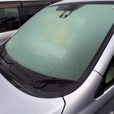 雪が降らなくても夜間に冷え込むとフロントガラスが凍結して白くなっていた