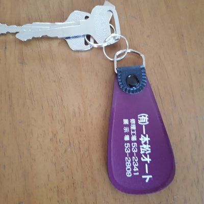 当社では、販売した車のカギに社名入りのキーホルダーをつけて納車します