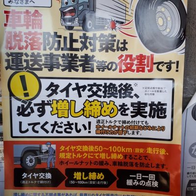 (前から注意はされていましたが)定期的なホイールナットの増し締めをするよう