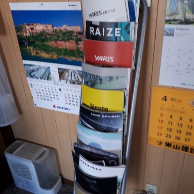 スズキやトヨタなどですが・・最新のカタログを常備しておかなくてはいけません。