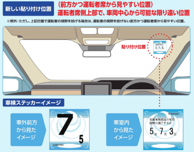貼る位置が変更になっています。 まだの人もこれから車検等でシールを張り替える